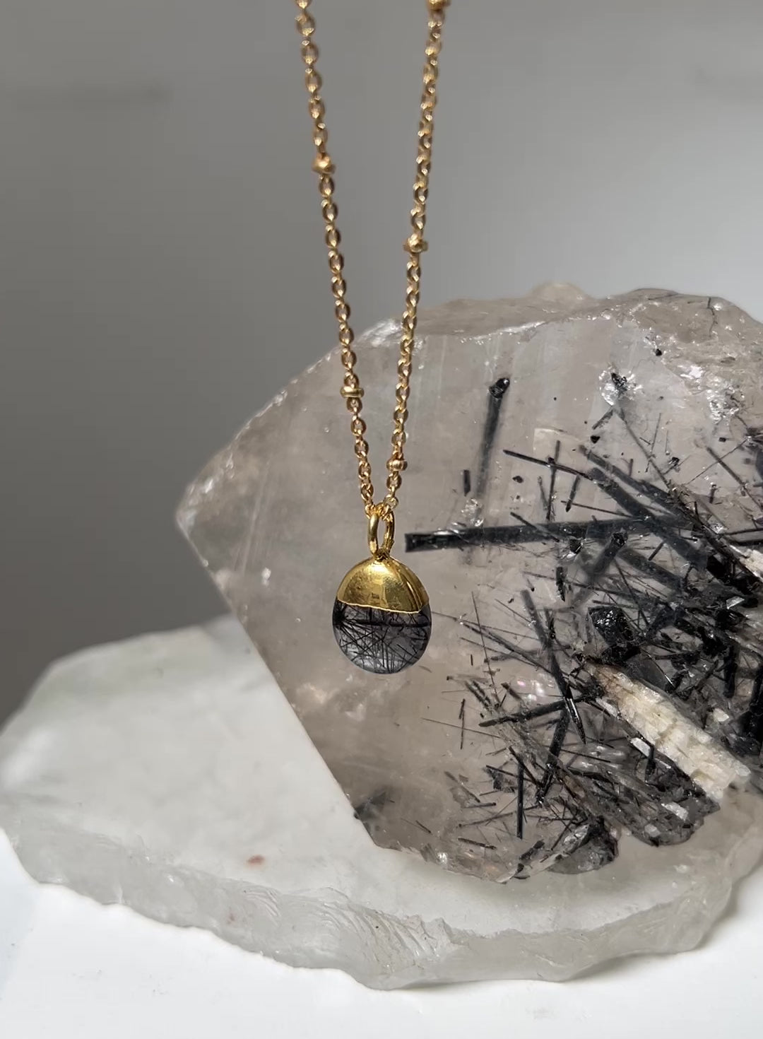 Mini Pebble Pendant Black Rutilated Quartz on Short Satellite chain